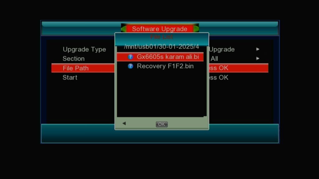 Insert USB in to the Receiver Then Select USB Upgrade Option at Top After This Select All Option