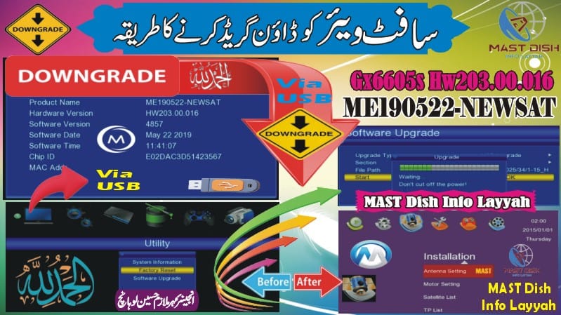 The ME190522-NEWSAT Hw203.00.016 software downgrade method is very useful for fixing receiver problems and installing stable firmware safely.